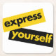 Modern, vibrant, bold graphic of Express Yourself Square Paper Coaster