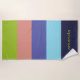 Modern design with vibrant stripes in the Pantone spring/summer colours of 2022 and chic typography. Make a bold statement at the beach or pool this summer with this colourful beach towel. Add your name to the towel and make it uniquely yours.