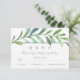 An elegant botanical wedding response card bordered in blue-green watercolor vines. The background colour is shown in white, but can be customised to match your wedding theme.