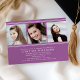 Announce your high school or college graduate in style with a three-photo graduation card with stripe details and modern sans serif invitation wording. Fuchsia orchid / ultra violet purple and white design colours. Customise to add three photos and your graduation announcement and party invitation details.
