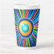 Modern wall clock with vibrant radial rainbow sunb latte mug