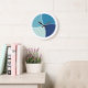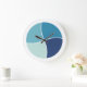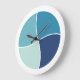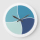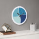 Modern wall clocks with colourful geometric circle art in various shades of blue on a white background. Designed for any modern or contemporary decor, you'll decorate your walls in style with this colourful design. Perfect for a livingroom, dining room, bedroom or bathroom.