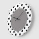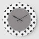 Modern polka dots wall clocks with black and white dots on the grey clock face in this decorative wall decor clock design for your kitchen, bathroom, or any room in your house you want to add some colour and character. Colours White, black and grey.
