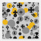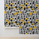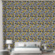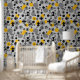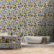 Wallpaper with a contemporary symbols pattern in yellow, grey and black.