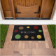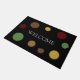 Modern warm coloured circles on black Welcome doormat.