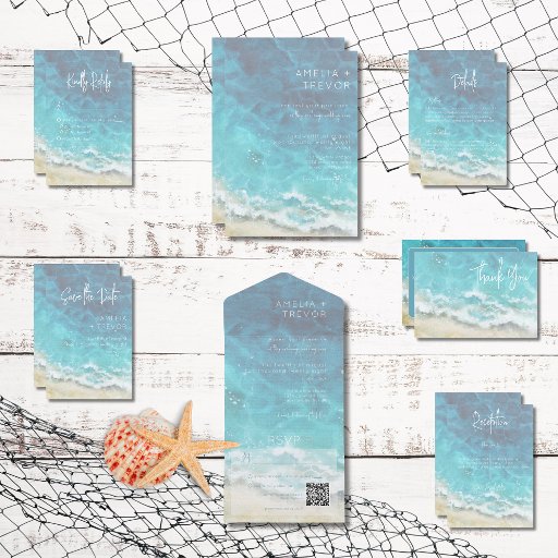 Modern Watercolor Beach & Sea Wedding SuiteDesigned by Kathe Santillo