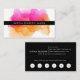 Chic watercolor business cards feature your name or company name layered on a blooming inkblot illustration in bright, colourful sunset hues of fuchsia pink ad goldenrod. Add your full contact information to the back in white on crisp black. Includes your custom loyalty offer (shown with "enjoy 20% off any service after five visits"), and six punchouts.