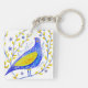 Modern Watercolor Blue and Yellow Bird Art Key Ring