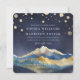 Modern Watercolor Blue Gold Mountain Wedding Photo Invitation