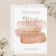 Pretty, modern, minimalist and trendy wedding invitation design features monochromatic Boho terra cotta watercolor brush stroke graphic with terra cotta and white customisable text blocks in modern fonts