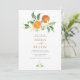A citrus oranges wedding invite with watercolor oranges theme design with elegant script calligraphy lettering.