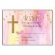 So trendy, this RSVP card features a pink watercolor background and faux gold lettering and confetti falling in the background.