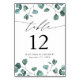 Modern Watercolor Eucalyptus Greenery Wedding Table Number
