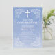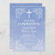 Our beautiful modern watercolor first holy communion invitation features a vintage scroll frame, a white cross and a chic fancy holy communion font set on a popular dark blue watercolor background. flip our communion invite over to view a matching back for an extra special touch. Perfect invitation for a girls communion or boys communion. Visit our shop for this invitation in a large selection of modern & trendy colours.