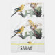 Modern Watercolor Floral Birds Monogrammed Tea Towel
