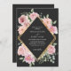 Modern watercolor floral Black and gold Wedding Invitation