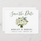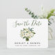 Modern Watercolor Floral Green and White Bouquet Save The Date Engagement Card