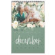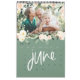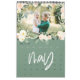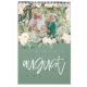 Modern, graphic hand written style multi photo calendar design. Stunning peach and green watercolor floral and foliage illustrations. Background colors can be changed to suit your style.