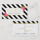 Lovely floral feminine business cards showcasing beautiful pink and purple tropical watercolor flowers and black-white diagonal stripes.