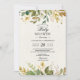 Modern Watercolor Greenery Leaf & Gold Drops Invitation