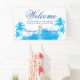 Our modern, water-coloured beach wedding greeting banner with your details and names impresses with a blue water-coloured island with palm trees and a stylish shell. Personalise the wedding banner and welcome your guests.
