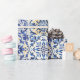 Modern Watercolor Mediterranean Blue Tiles Wrapping Paper