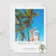 Simple and modern, palm tree themed wedding invitation featuring two watercolor palm trees and some black text. This design also features the couple's photo and additional information on the back.