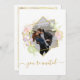 Wedding invitation with delicate watercolor flowers and golden accents. Customise with photo on front and details on back