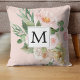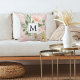 Modern Watercolor Pink Flowers Monogrammed Cushion