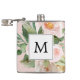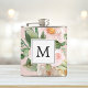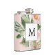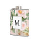 Modern Watercolor Pink Flowers Monogrammed Hip Flask