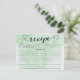 Contemporary Bridal Shower Kitchen Recipe Cards featuring a stylish black typography script font set on a green watercolor background background. The front of our recipe card offers room for a recipe title, from the kitchen of and ingredients space. Flip our recipe card over to view directions, prep time & total time. Visit our shop for matching bridal shower invitations Available in our shop in a large assortment of popular wedding shower colours. Perfect bridal shower invitation insert for a stock the kitchen bridal shower.