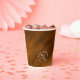 A handwritten, signature font combined and glitter-veined marble backgrounds add just the right touch for an elegant wedding in most pieces of this wedding set. The coordinating paper cup shown here features a minimalist design of your names, initials and wedding date on a russet and gold, watercolor background. Search ID816 to see other pieces and color choices for this set.