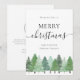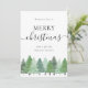 Share warm holiday wishes with clients, colleagues, and business partners with this corporate Christmas flat card template featuring original watercolor artwork by artist Catherine Sweetman. The elegant minimalist design showcases a snowy woodland pine and fir tree forest paired with sleek black elegant script and stylish modern typography on a crisp white background, creating a professional yet festive look.