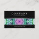 Stylish modern business card with a mostly black background. Between the silver coloured lines the details of a water lily flower mandala show, providing a bright pop of colour, making this contact card stand out from the crowd. Click customise to have more control over font choices and the use of space for text.