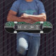 Custom skateboard featuring a cool wave abstract design with black, grey, and green colours. Customise the modern board with your desired text or letters. Made of maple wood. Also makes a nice gift. Use the template to create your own custom skateboard.