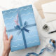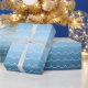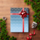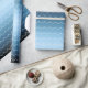 Make your gifts stand out with wrapping paper featuring a stylish modern pattern featuring white curving waves on a blue gradient that goes from dark blue to light blue and back to navy blue.