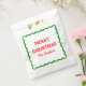 Celebrate the season in style with these custom Christmas favour bags! Featuring a festive green wavy border and bold red 'Merry Christmas' text, these bags add a vintage-inspired charm to your holiday gatherings. Personalise with your family name to create a warm, welcoming touch for guests. Perfect for filling with treats, small gifts, or party favours, these bags make holiday parties and family gatherings even more memorable. Spread cheer and add a personal touch to your holiday festivities with these delightful favour bags!