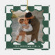 Modern minimal graphic check pattern green wavy edge photo Christmas holiday home decor ornament. Bold on trend design. Part of a holiday collection.