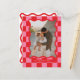 Modern minimal graphic check pattern red and pink wavy edge photo Christmas holiday postcard. Bold on trend design. Part of a holiday collection.
