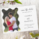A stylish photo save the date invitation announcement featuring your photo in a modern wavy edged frame and a script font. Change any of the text to customise.