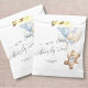 Celebrate the anticipation of your little boy's arrival with PixeliaDesigns' "We Can Bearly Wait" Blue Boy Shower Favour Bags. Designed in a modern style, each blue bag showcases a watercolor illustration of an adorable teddy bear adorned with a blue ribbon, clutching a cluster of blue and beige balloons, symbolising the joy and whimsy of new beginnings. The phrase "We can bearly wait" is elegantly scripted in modern calligraphy, adding a sophisticated touch to these charming keepsakes. Perfect for party favours or small gifts, these bags are a delightful way to share your excitement with friends and family.
