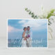 Announce your recent wedding to family and friends! This modern wedding announcement card design features a horizontal photo of the new husband and wife on the front with a white brushed "We Eloped!"