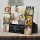 An elegant, modern Mother's Day gift: A trendy Instagram family photo collage keepsake plaque reading WE LOVE YOU MIMI in pretty hand lettered script alongside your names and 7 of your favorite pictures accented by sweet printed rose gold hearts for the best grandma ever.