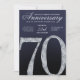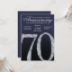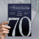 This modern anniversary invitation card showcases a bold diamond-style number seventy set against a deep navy blue background with luminous silver accents. The faceted crystal detailing adds contemporary sparkle, while clean lines, smooth gradients, and subtle light textures create a refined, upscale appearance. The modern navy and silver color palette delivers a timeless yet stylish feel, making this invitation ideal for hosting an elegant and memorable 70th anniversary celebration.