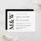 Modern Wedding Bold Black and White Invitation. Stylish black and white design featuring customisable bride and groom initials. Personalised with your own text. Back is shown in solid black, however, you may choose to make it a different colour, to add text and or add images using the tools provided within Zazzle's customisation menus. We invite you to visit our store, Austen & Grace, to view the full wedding suite, matching products and more, and please contact us if you require extra matching products or any assistance contact@austenandgrace.com