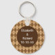 Create a unique guest favour for your wedding with these modern keychains. The contemporary pattern features a large cat pattern in earth tone colours. The geometric shapes form diamond shapes in orderly rows behind a large dark brown circle that provides the background for the bride and groom's names and the wedding date. Personalise all text quickly and easily.