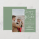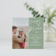 Modern rustic photo design with sage green backdrop that quickly and easily notifies guests and loved ones of your wedding change of plans, and reschedule date. The template is fully editable that you can replace with your personal photo, names, new dates, and other important details.