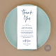 Share the love and show your appreciation to your guests, when they sit down at their seat and read this personalised charming navy blue theme thank you place card (Thank you). It's a wonderful way to kick off your special day celebration! This card is sure to set the tone for an unforgettable event. The thank you card features modern design script theme, adding a touch of timeless elegance to your celebration. Designed by TeeshaDerrick