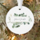 Modern Greenery Design in Greens & Gold accents on white background. Custom Wedding Couple NAMES in black. Custom Wedding DATE in black on back. Easy to personalise text, text colours. A beautiful, simple, timeless addition to any wedding event, occasion, tree, all year long. Modern, Elegant, Timeless. A forever keepsake. Mix and match entire Wedding / Elegant greenery Collections by TMCdesigns.