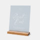 This Dusty Blue Guest Book sign features soft script typography on a frosted, glass-like surface paired with a natural wooden base. The minimal design blends beautifully into modern, classic, and garden wedding settings while adding a refined, high-end touch to your décor.